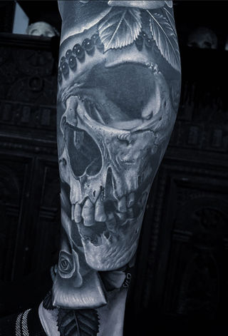 My work draws heavily on archetypal and symbolic themes — deities, goddesses, ancient Egyptian mythology, skulls, and the interplay of light and dark. I’m deeply inspired by the philosophies of Carl Jung and believe that tattooing can be a profound vehicle for personal transformation.